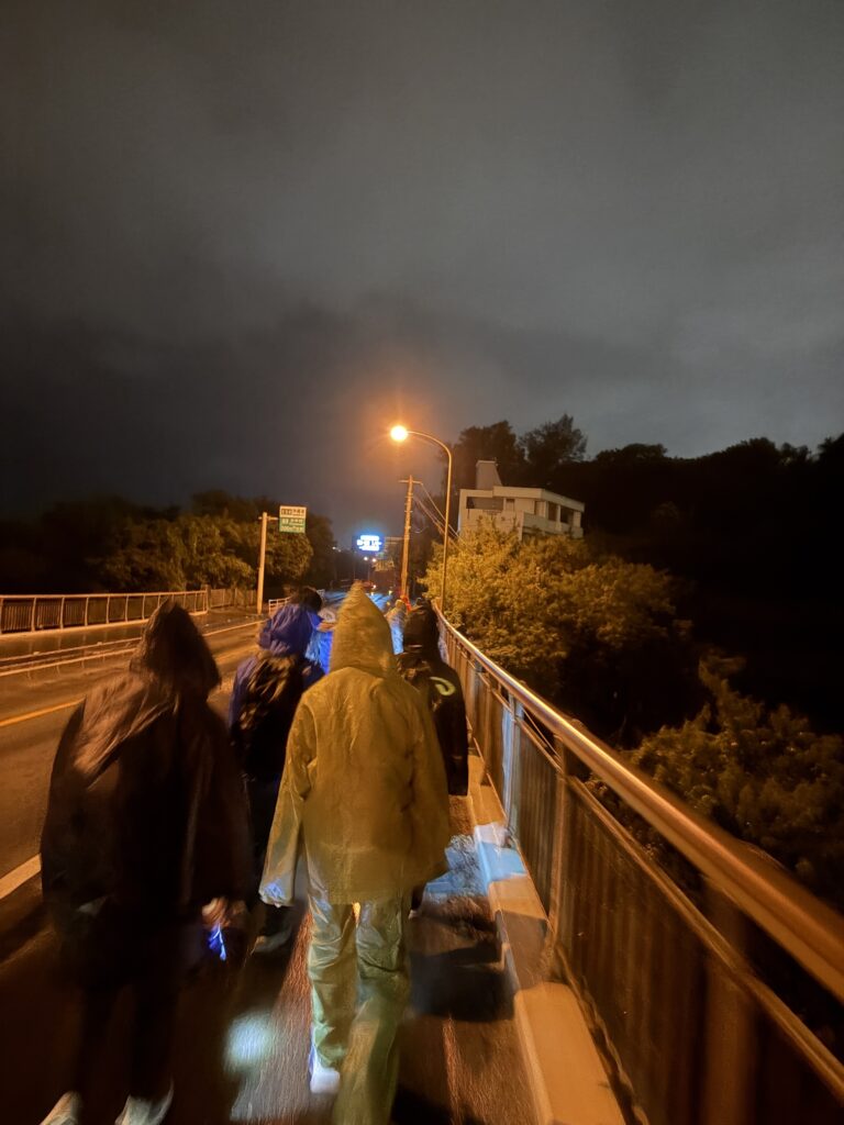 二日目は夜が明ける前から歩き始めます。冬の沖縄の風は強く、またスコールにも見舞われる中、黙々と一歩一歩進みます。