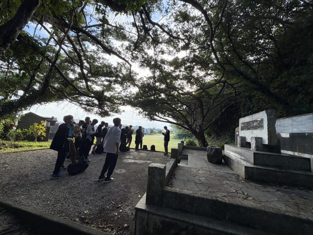 今回は、広島学院の「ILP」講座の一つ「オキナワを歩く」に特別に参加させていただいた本校国語科の今村先生の報告文ご紹介いたします。戦後80年の年にあたり、同じカトリックのミッションスクールである広島学院の生徒さんや先生方と、このように貴重な体験を共有できたことに感謝いたします。今村先生は国語科若手。「もはや戦後ではない」などと言われた時代からもずっとあとに生まれた世代です。そんな若い先生にとって、今回の研修は非常に重く深い体験であったでしょう。言葉で簡単に表せない深い思いもあるでしょうが、無理を言って、以下簡潔にレポートしてもらいました。