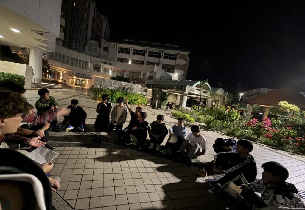 毎晩「わかちあい」の時間が設けられ、全員が自分の思いを言葉に紡いでゆきます。夜になっても全員が話し尽くすまで続きます。他者の言葉に共鳴して学びが深まることもしばしば。歩くからこそ生まれる省察の時間です。