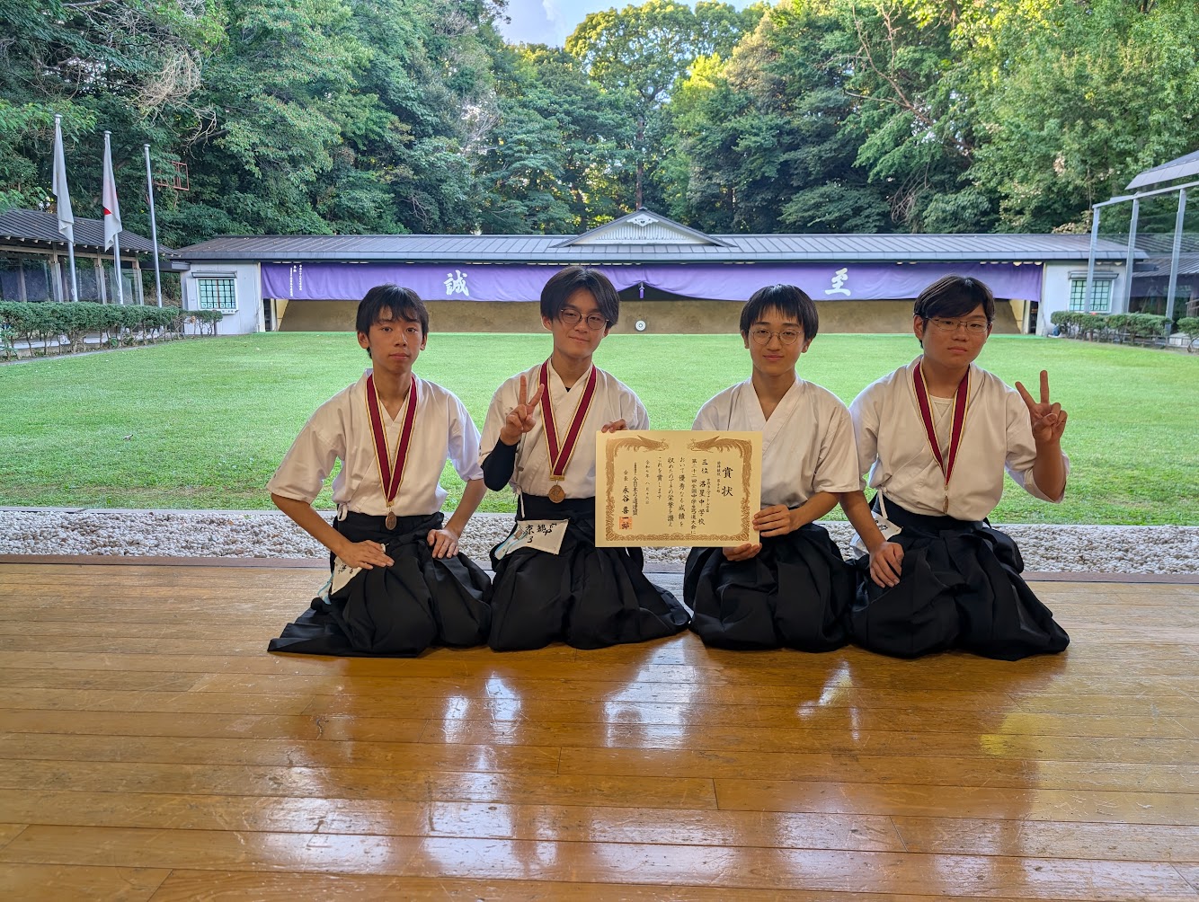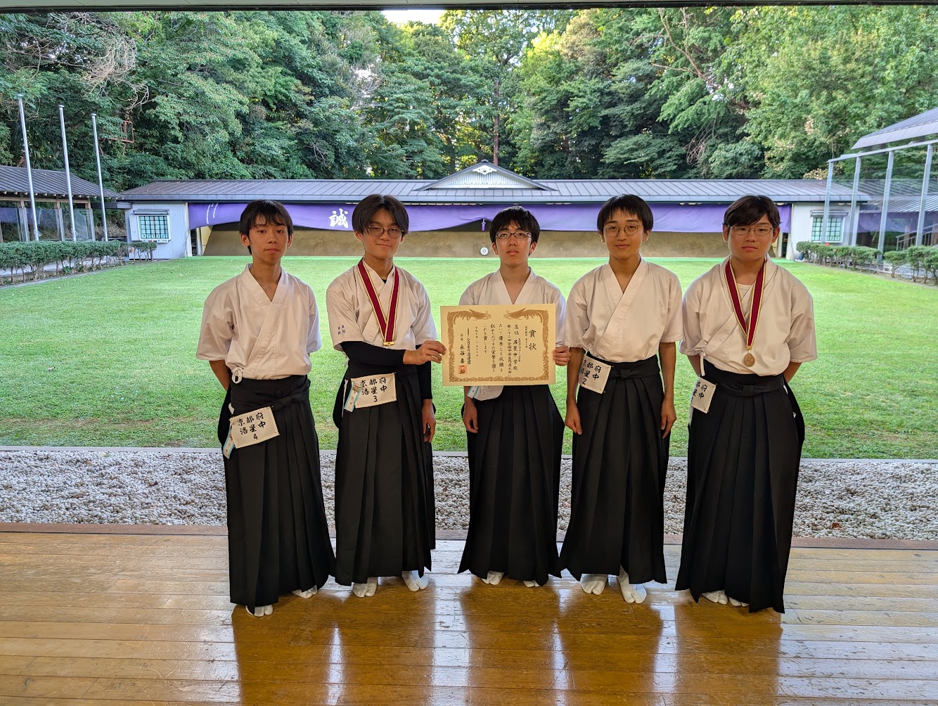 8月16日に明治神宮至誠館弓道場で開催された全国大会に本校弓道部が個人(M3E 前野亘輝)・団体(上記生徒)共に出場しました。