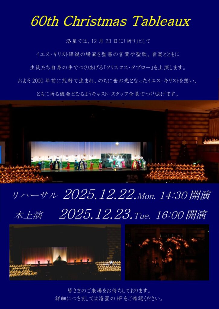今年も12月23日16:00より本校大講堂にてクリスマス・タブローを上演いたします。