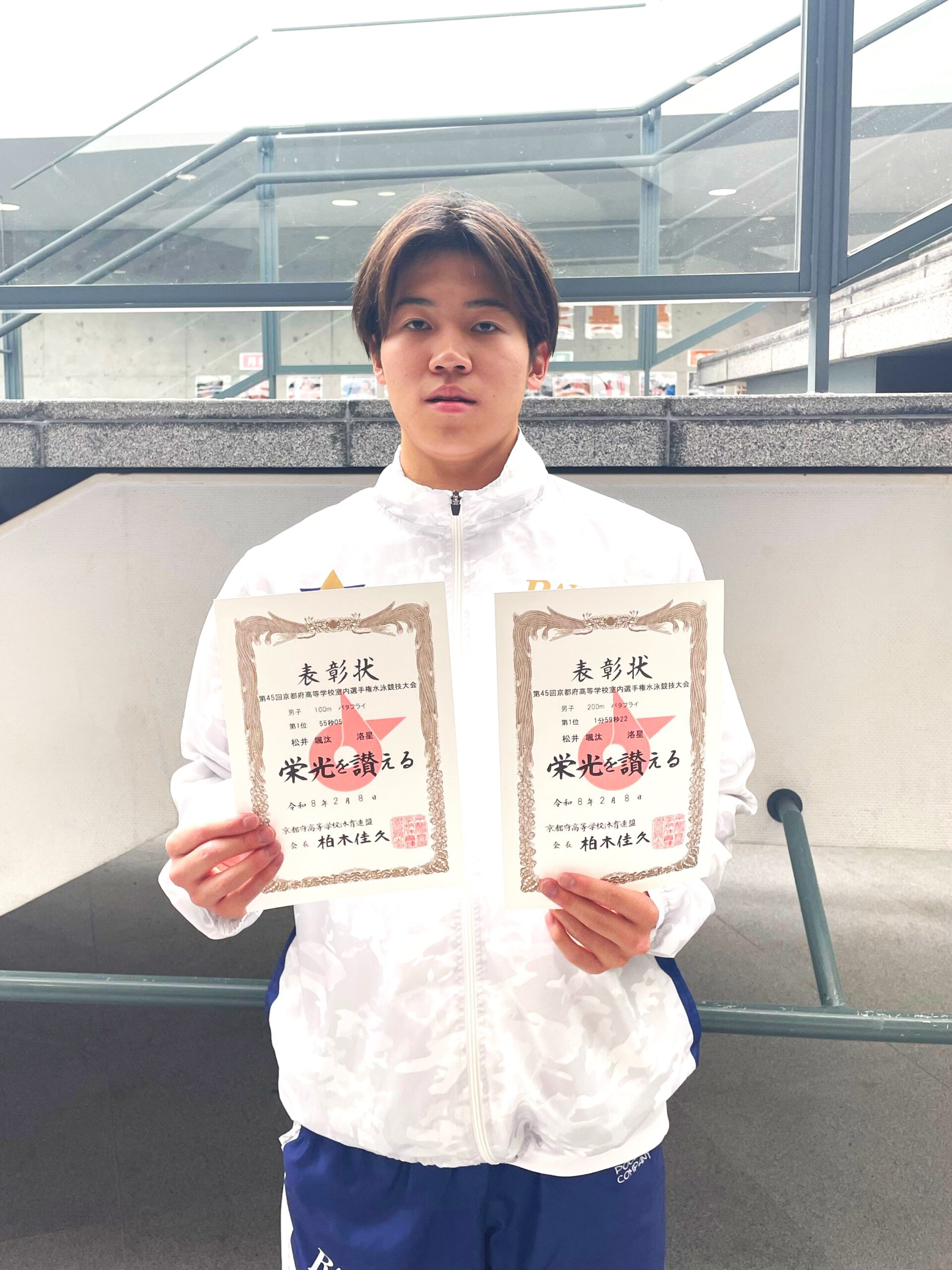 2月8日に開催された、第45回京都府高等学校室内選手権水泳競技大会において、本校水泳部が以下の成績を収めました。