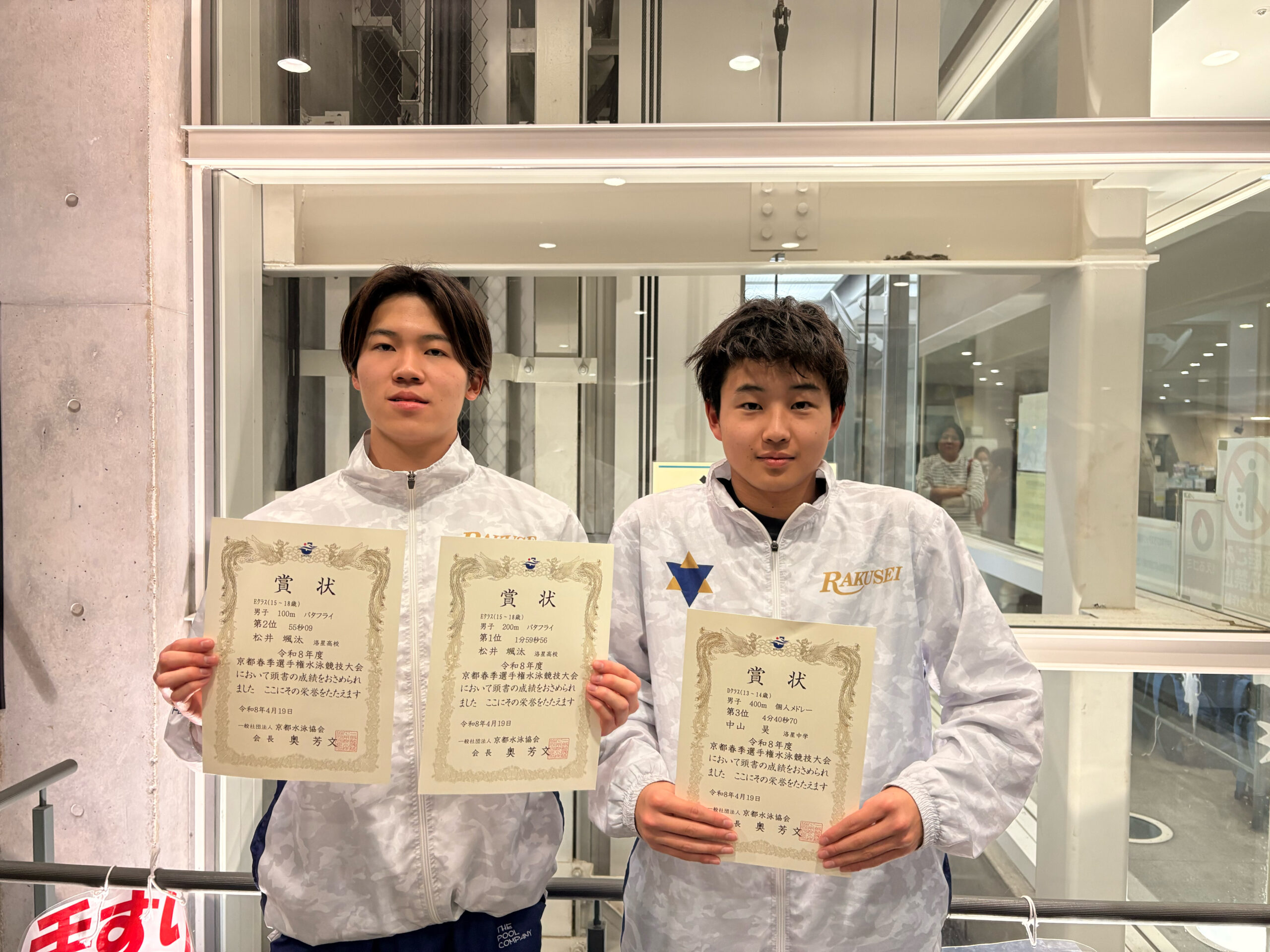 4月19日に開催された、京都春季選手権水泳競技大会において、本校水泳部が以下の成績を収めました。